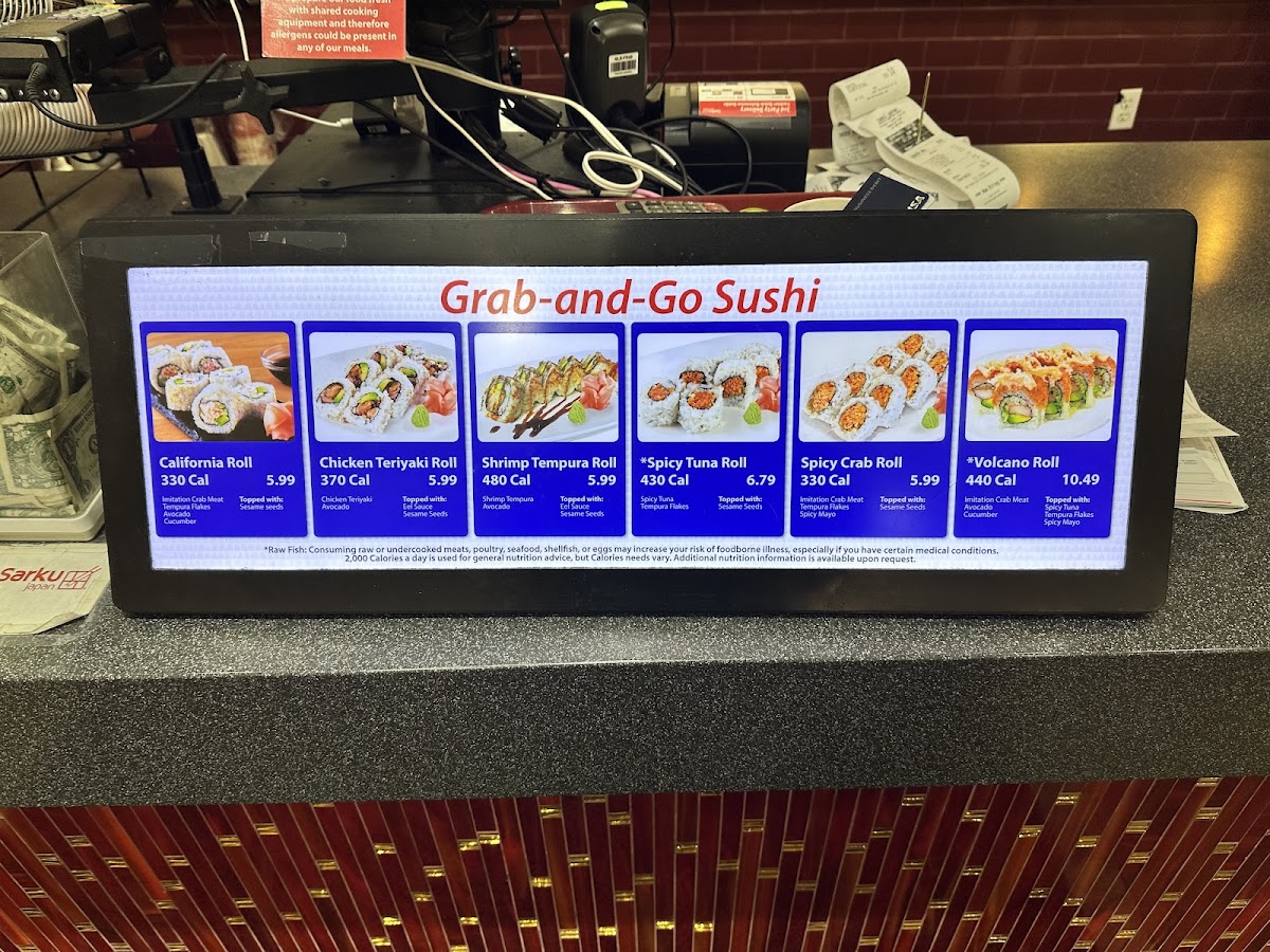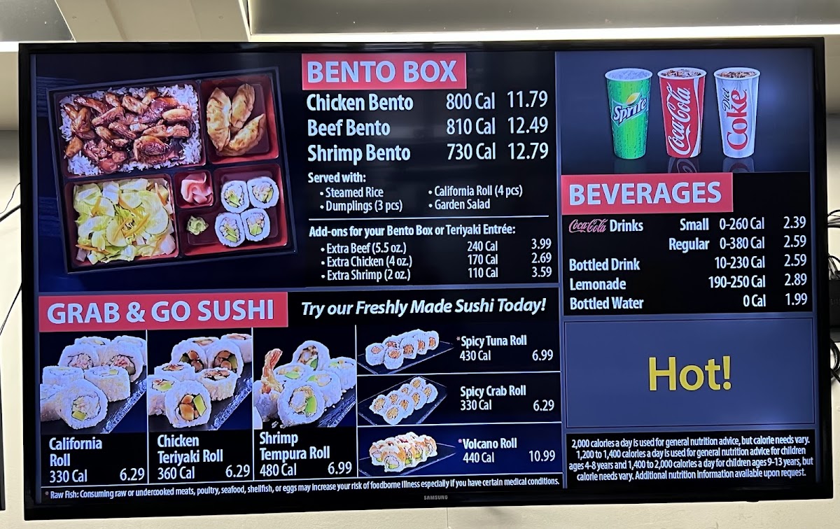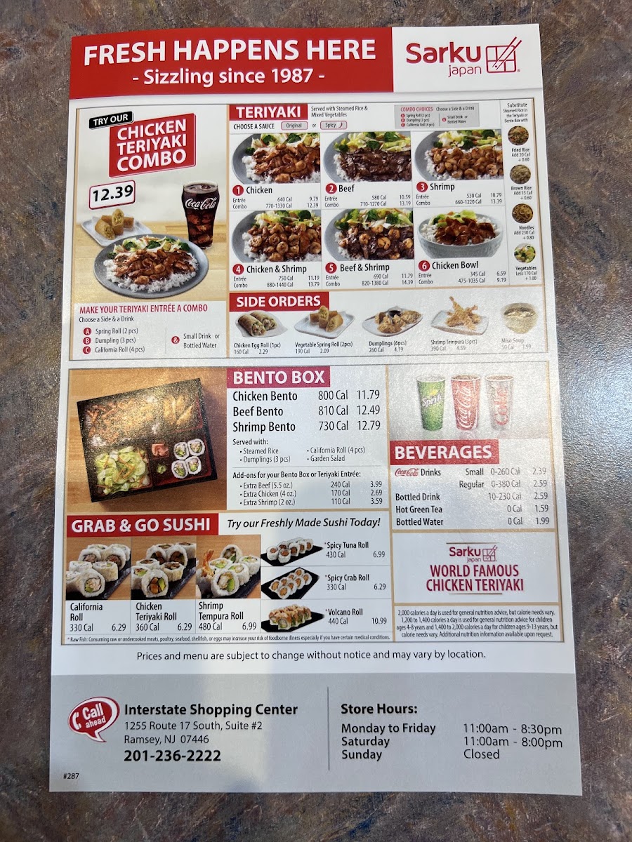 From a reviewer’s perspective, the menu at Sarku Japan Teriyaki & Sushi Express offers a straightforward yet satisfying selection centered on classic Japanese-American favorites. The teriyaki lineup is the highlight, featuring options like CHICKEN TERIYAKI, BEEF TERIYAKI, SHRIMP TERIYAKI, and combination plates such as CHICKEN & SHRIMP TERIYAKI and BEEF & SHRIMP TERIYAKI, all delivering the expected savory, grilled flavors. For those looking for a more complete meal, the CHICKEN TERIYAKI COMBO, BEEF TERIYAKI COMBO, and SHRIMP TERIYAKI COMBO provide hearty portions, while the CHICKEN & SHRIMP TERIYAKI COMBO and BEEF & SHRIMP TERIYAKI COMBO add variety. The BENTO options-CHICKEN BENTO, BEEF BENTO, and SHRIMP BENTO-offer a balanced assortment for diners wanting a bit of everything. Starters like SHRIMP TEMPURA, DUMPLINGS (6pcs), CHICKEN EGG ROLL, and SPRING ROLL (2PCS) complement the mains well, with WHITE SAUCE as a popular addition. Sushi lovers can try the VOLCANO ROLL, adding a fusion twist to the menu. To round out the meal, beverages such as SNAPPLE LEMON TEA, SNAPPLE KIWI STRAWBERRY, CANNED COKE, CANNED DIET COKE, and CANNED SPRITE provide familiar refreshment options. Overall, while pricing isn’t specified, the menu emphasizes variety and classic flavors, making it a reliable choice for a quick and filling meal.